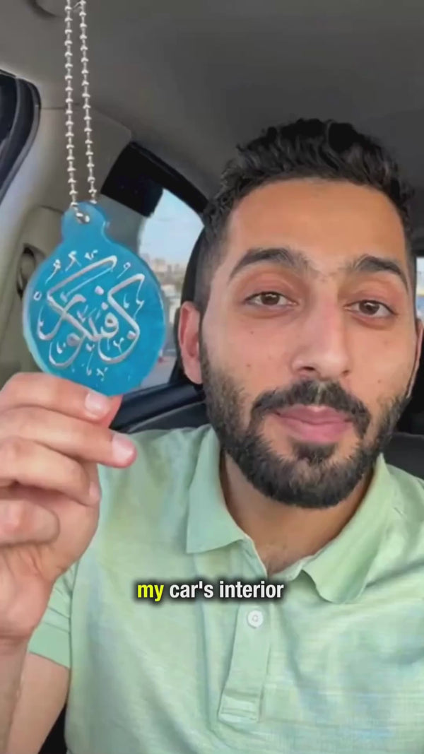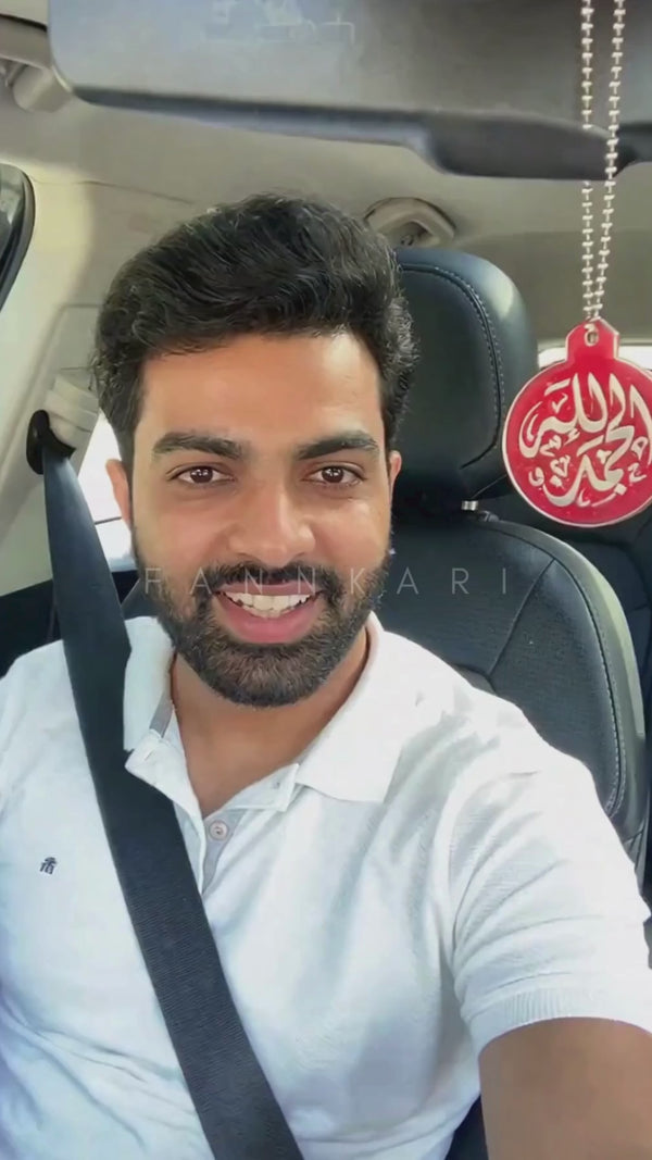Handmade Islamic Calligraphy Brown Resin Car Mirror Hanging