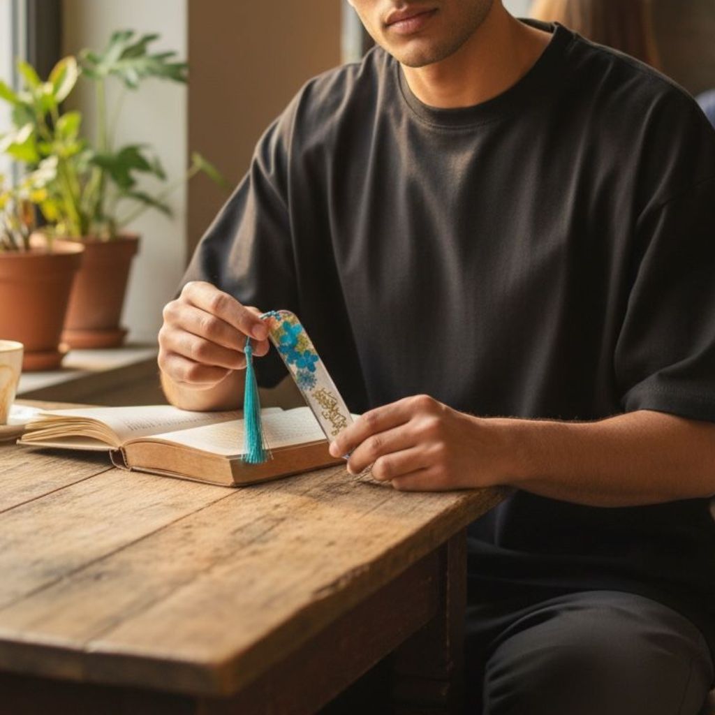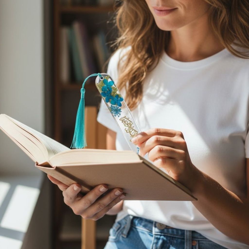 A beautiful resin bookmark featuring natural dried flowers, elegant calligraphy, and a soft tassel. Lightweight, stylish, and durable — the perfect blend of art and function. Ideal for gifting or adding a touch of charm to your reading experience.