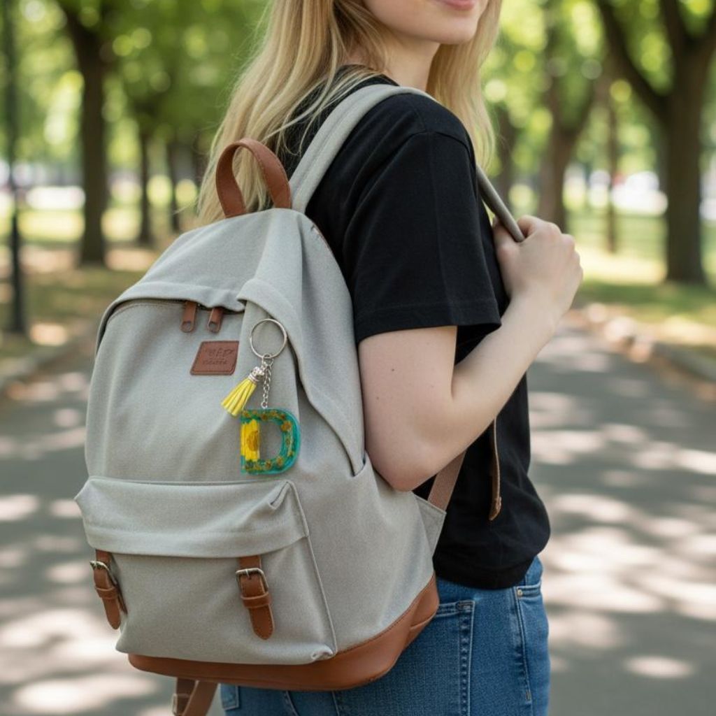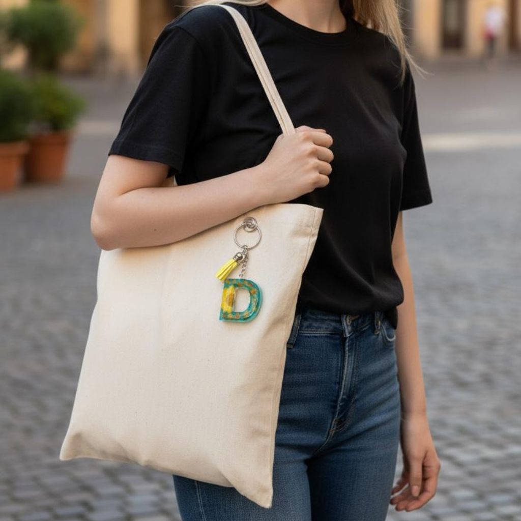 Resin Initial Keychain D – Natural Dried Flower